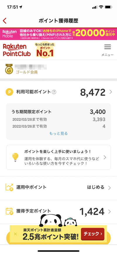 (そのうち期間限定ポイントが3400pではありますが・・・)