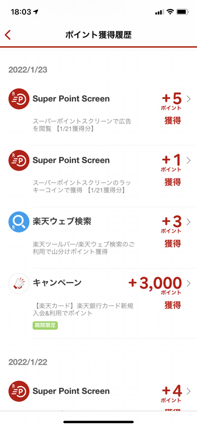 Super Point Screenと楽天ウェブ検索は地味ですが毎日ゲットできるので生活習慣にしています。