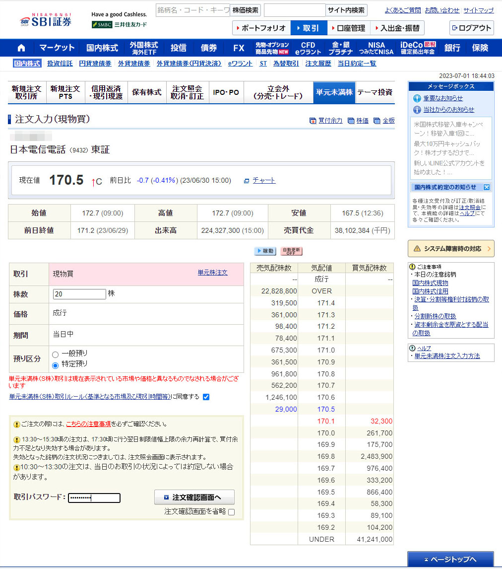 日本電信電話(NTT)は単元になった200株の取得単価は167円