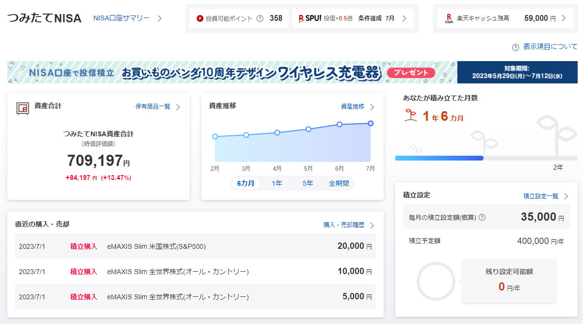 つみたてNISAも大きな変化はないが順調に推移。順調というか順調すぎる感じで何時まで続くのか?って思います。利回りは+13.47%