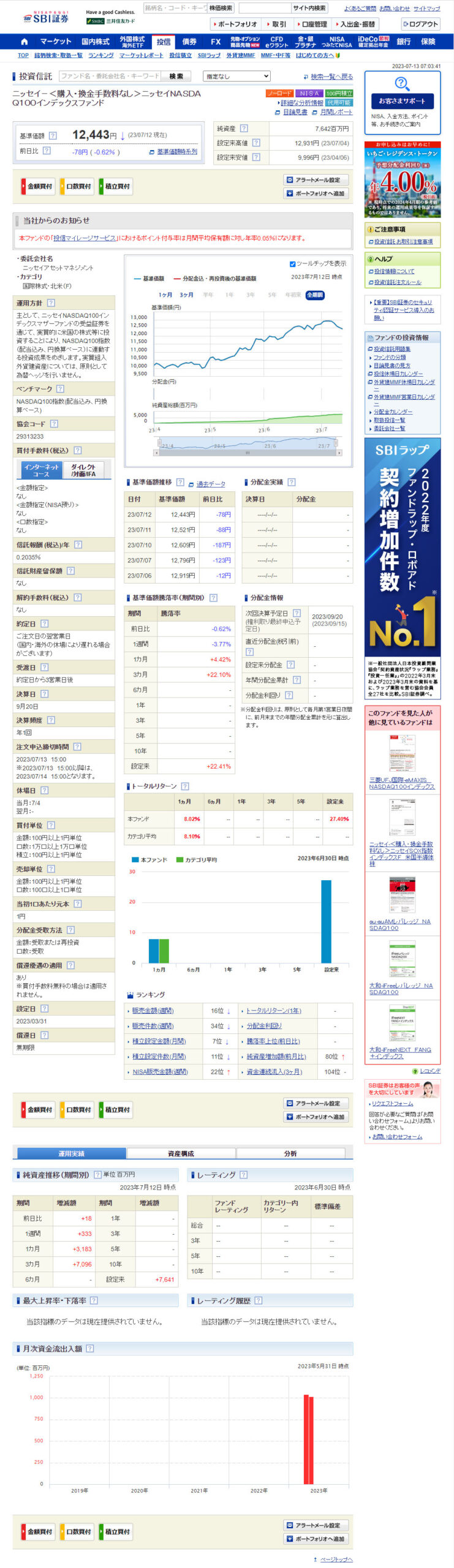 早速、投資に回そうと思います。まず選んだのが「ニッセイNASDAQ100インデックスファンド」