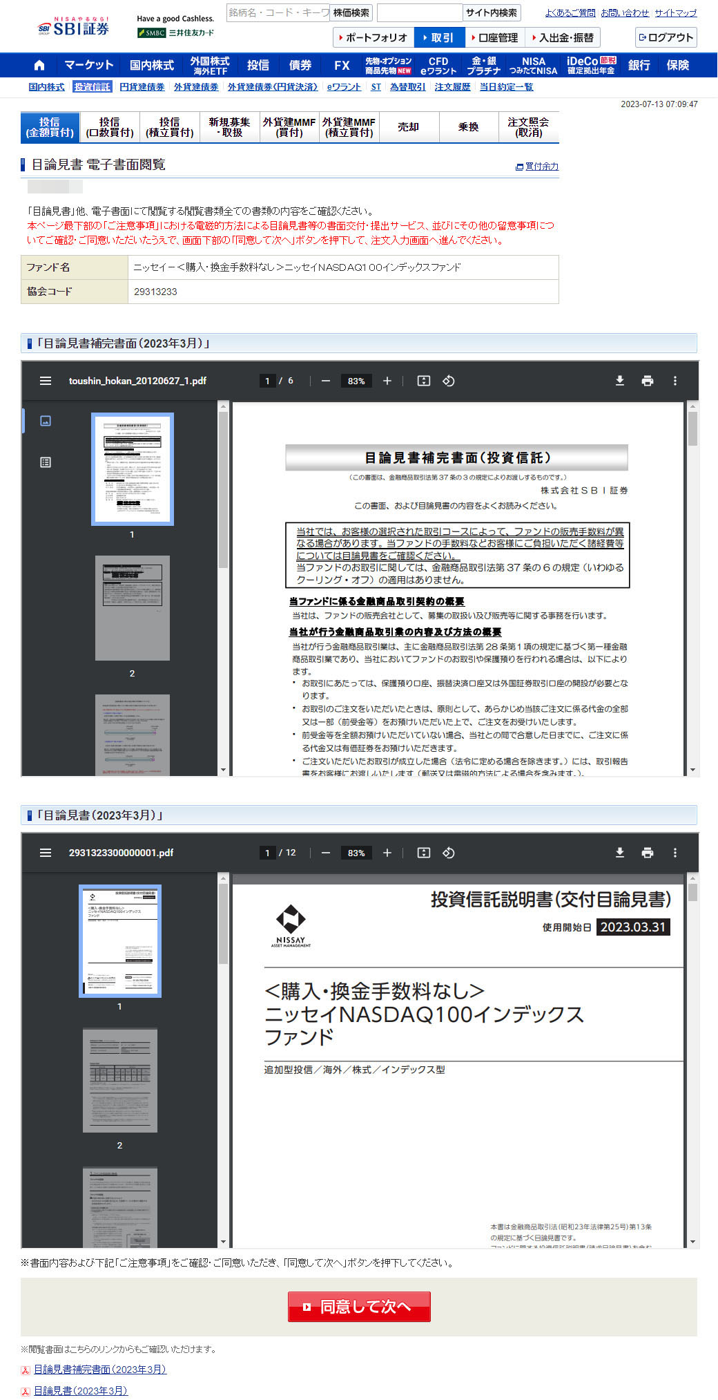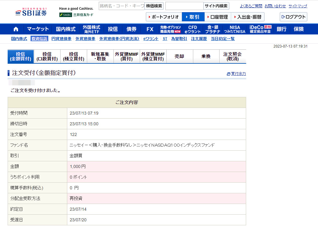 見慣れた投資信託購入画面