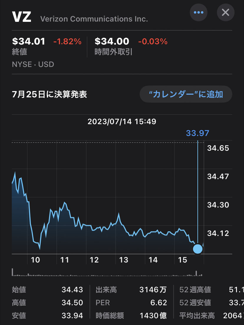 ベライゾン・コミュニケーションズ(VZ)2株買いました