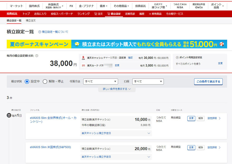 年内は最低でも楽天証券で現行の「つみたてNISA」はやりますので月々30,000円は入金しないとなりませんので・・・5,000円は予備w です。(←コレも年内に設定を変えることになるか?)