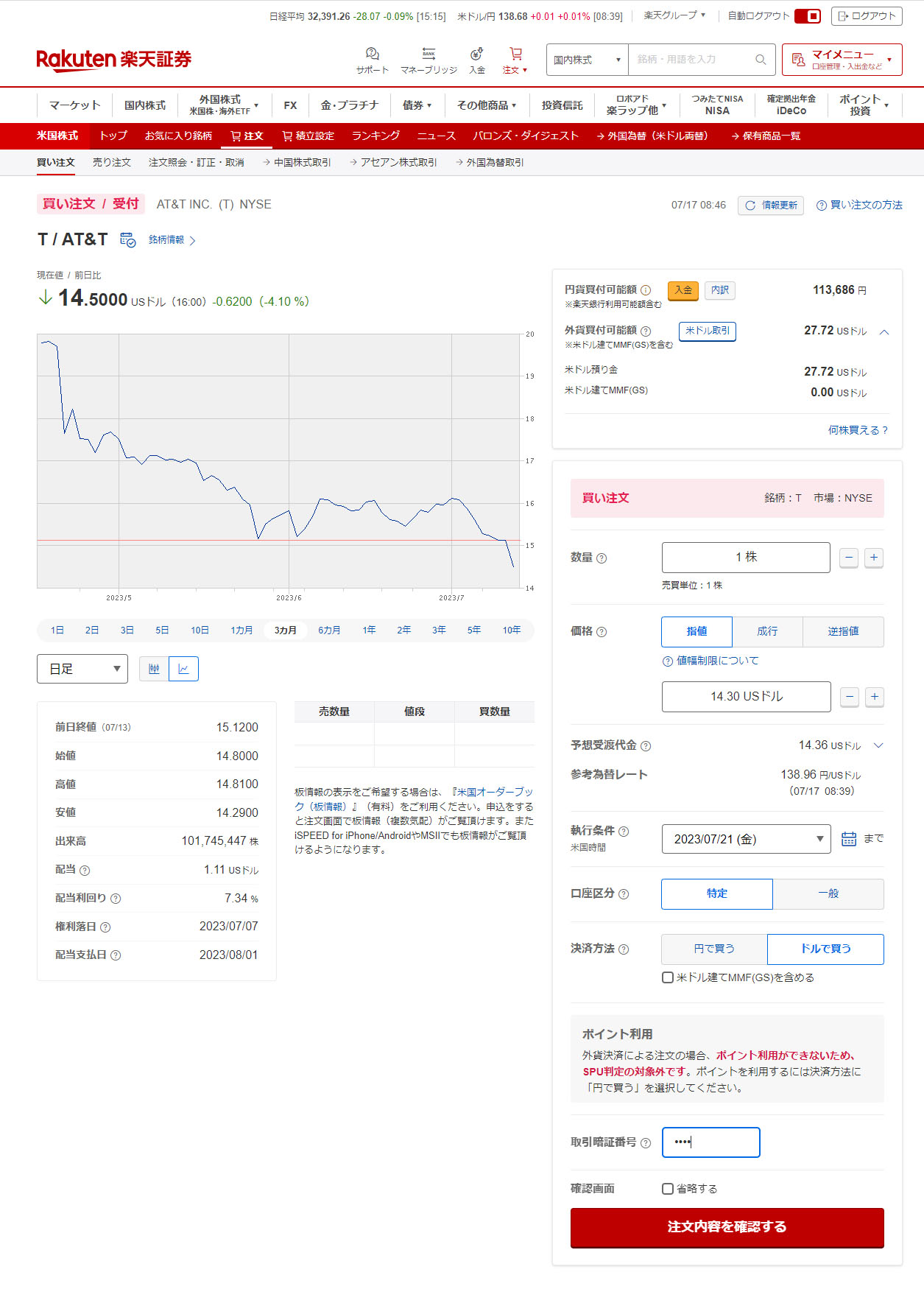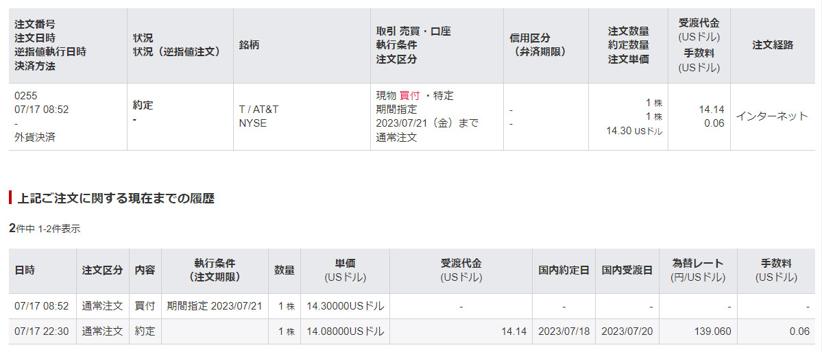 何と指値よりさらに低い$14.09で刺さっていました。こんな事あるの?