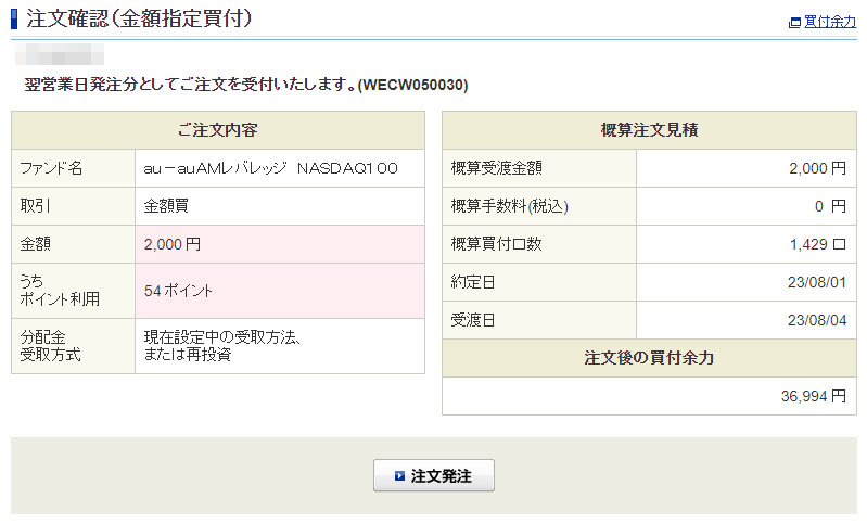 「auAMレバレッジNASDAQ100」にも今回は2,000円分!