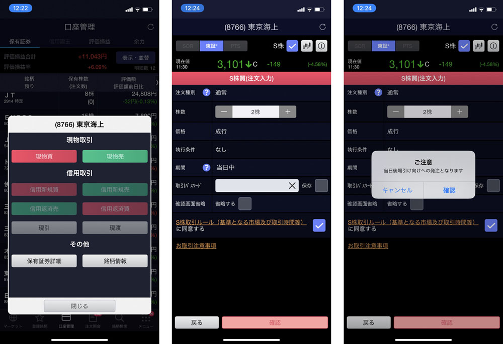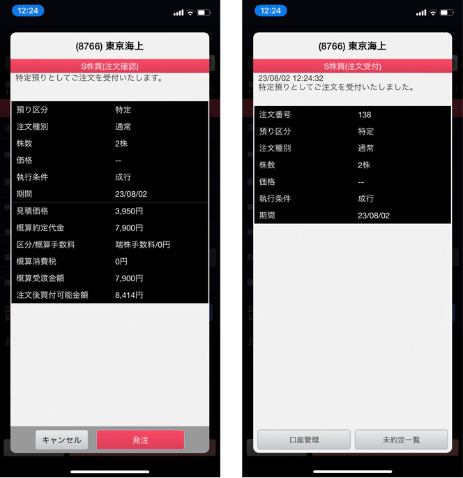 昼休みに会社で手続きをしたのでスマホです。スマホで単元未満を買うのは初めてでしたがノーストレスで買えました。お昼の12:24なので約定は後場引けになります。