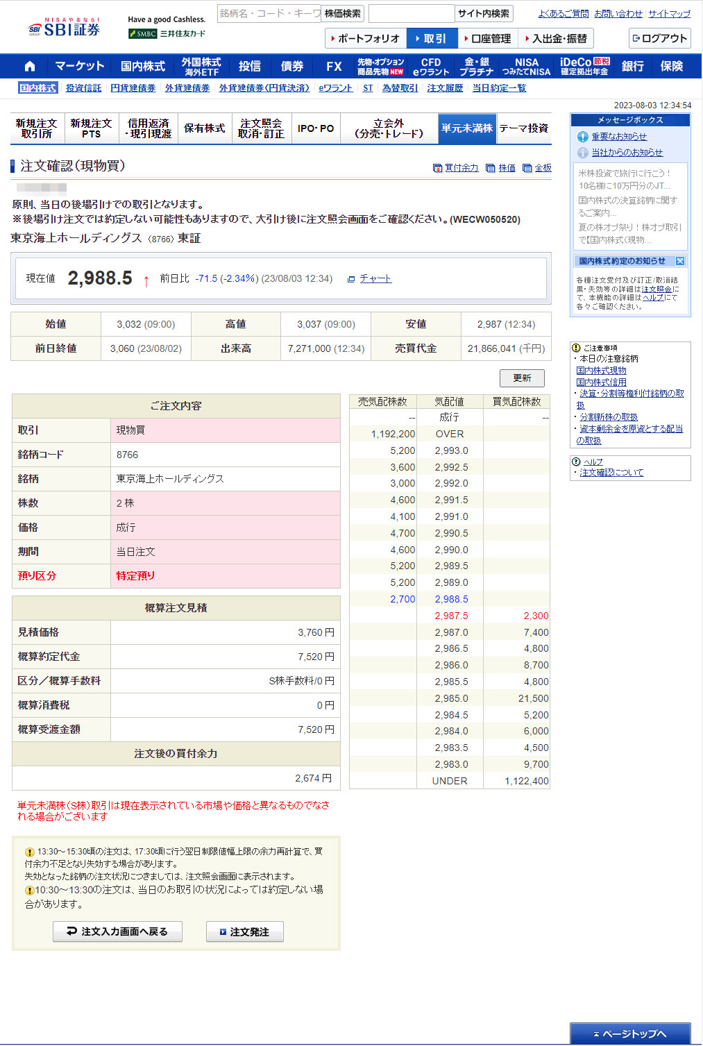 平均取得単価はこれで2,964円。ギリで3,000円を割っています。