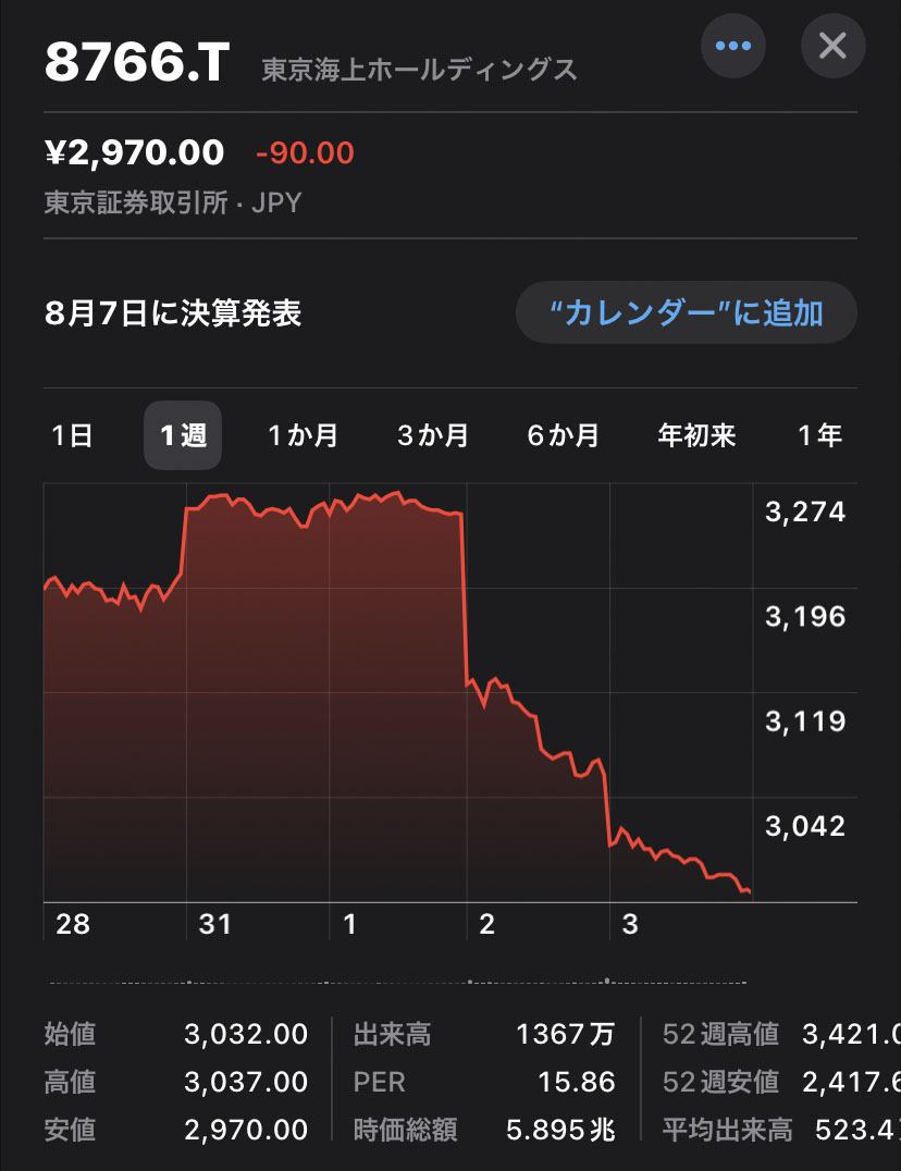 今日は在宅だったのですが昼休みに株価をチェックすると
