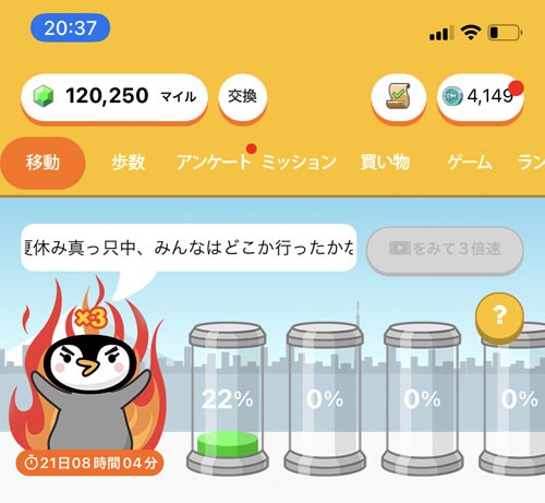 トリマのマイルが貯まりました ようやく120,000マイルが貯まりました。 個人的には「トリマ」が一番効率よく貯まってるような感覚ですがやはり現金化できる120,000マイルを貯めるには約1ヵ月掛かります。 早速、現金化の申請をしました。