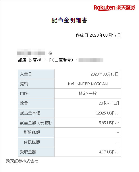 キンダー・モルガン(KMI)から配当がありました|2023.8 予定通りの$が入りました。 今は米国の高配当株にベクトルが向かっていなくw あまり買い増しはしていませんがやはり入ると嬉しい!KMIはコレで2回目の配当です。