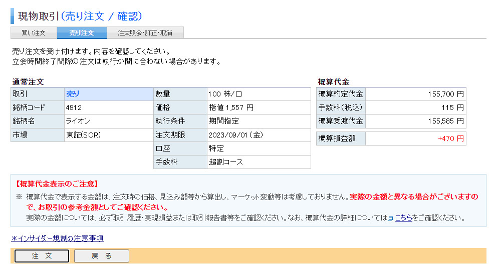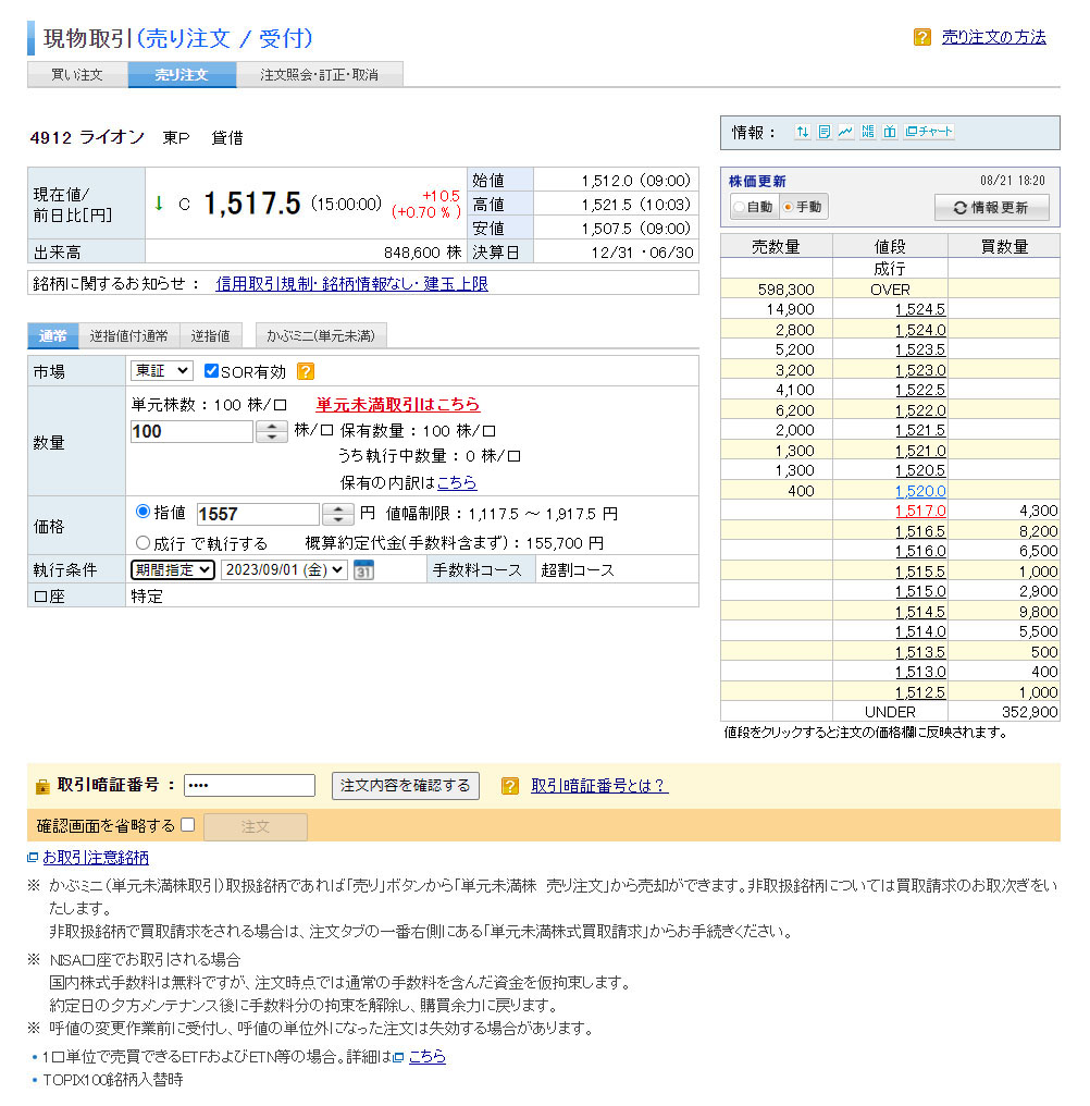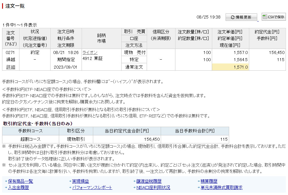 ライオン(4912)売れました