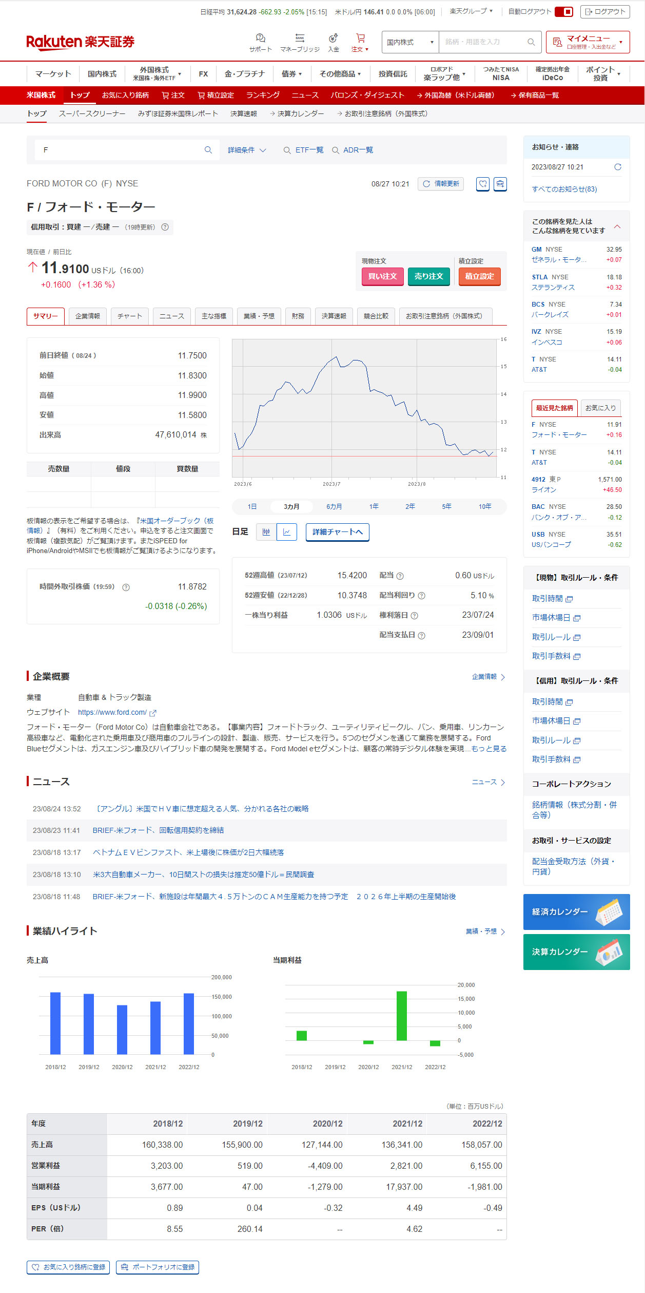 VALEはブラジルでの鉱山資源関連の企業(米国の企業なのですが)ですので何となく分り難いかも? とか思いまして。フォードは株単価が安いのも買いやすく私に向いていそう・・・って事でw