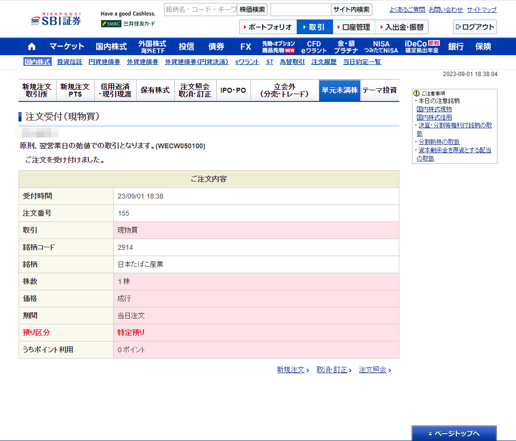 早速、1株追加注文を入れました!金曜の夜なので約定は月曜の寄付きだから急ぐ事は無いのにねw