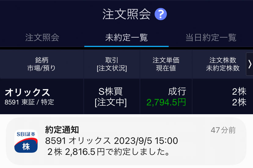 こちらも後場になり上がり約定は2,816.5円となりました。ん~~~微妙に上がったw