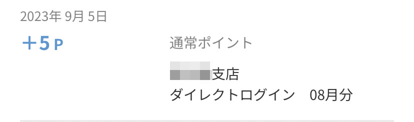 今回入ったのは毎月恒例の三井住友銀行口座へ「ダイレクトログイン」分の5ポイントです。