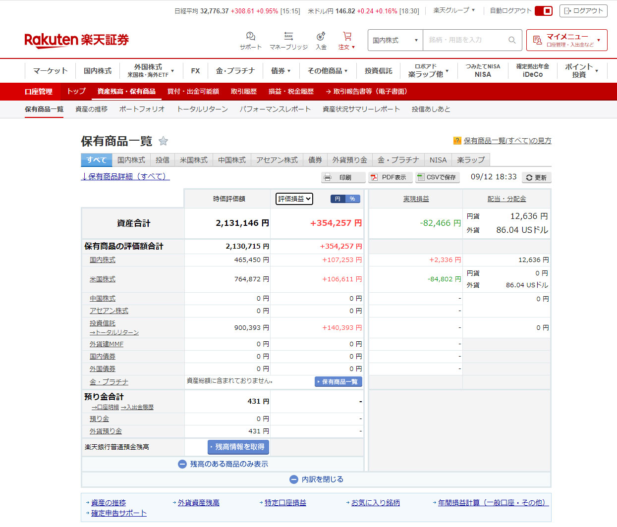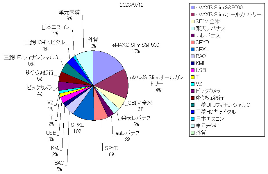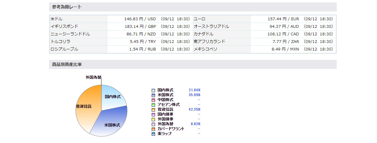 ライオンが無くなったので国内株の比率が下がりましたが、これはあくまでも楽天証券口座です。SBI証券を含めた全体では割合は多くなっています。円安は高止まりですね~。