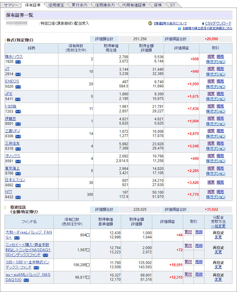 逆に日本株はこのところの株高でかなりの評価益!三菱UFJなんかはレバナスより利回りがイイ!