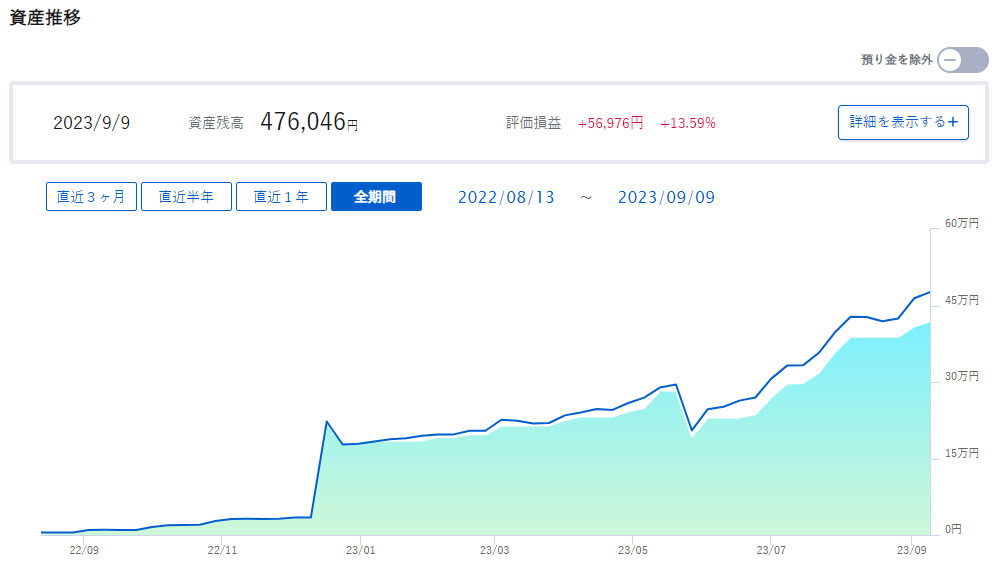 まだはじめてから半年なのでバラツキがありますがまぁまぁ予定通りかな?こんなに日本株が上昇するとは思いませんで・・・こんな事なら4月にもう少し突っ込んどけば良かった。