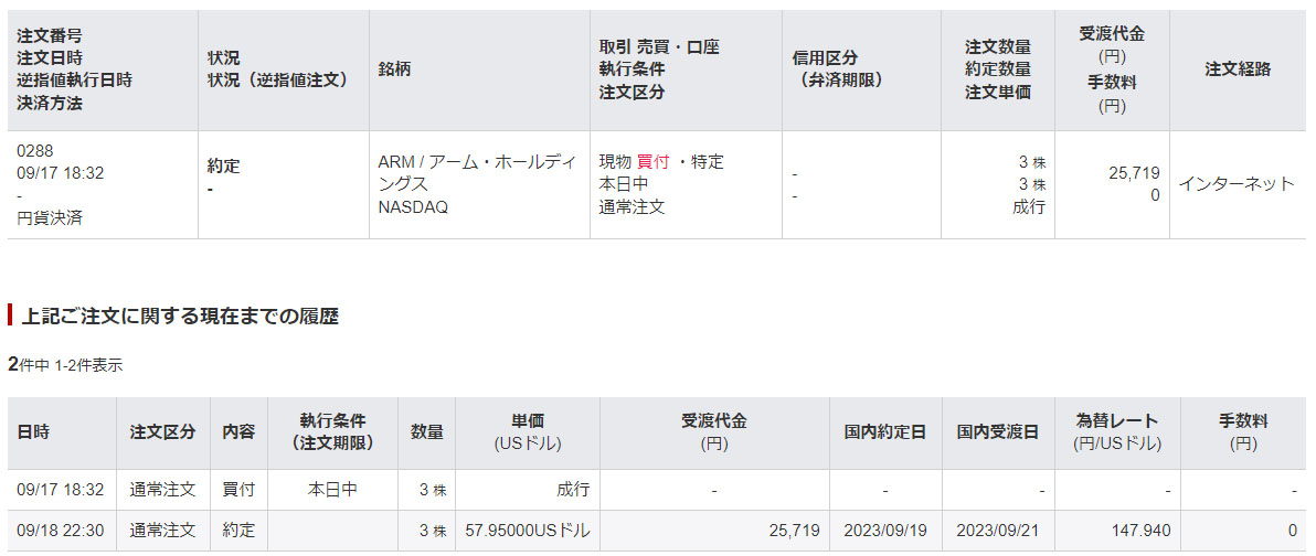 9月19日 $57.95で約定しました。手数料は0円です!