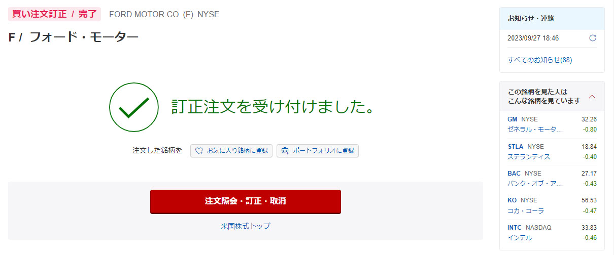 米国の自動車労働組合のストライキ問題。これでフォードの株もググっと下がるだろうと思いまして9月14日に$11.99で指値を入れました。