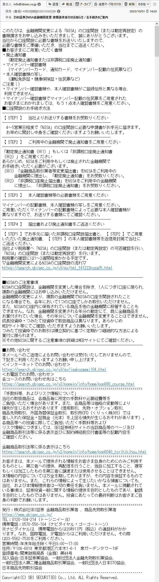 SBI証券からは受付のメールが送られてきました。
