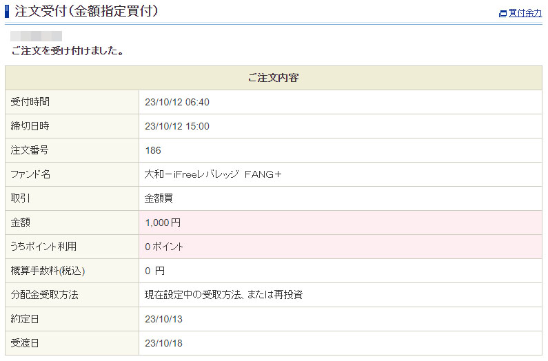 「Powl」ではまた違った投資先を考えていたのですが今回は「トリマ」と同様に「iFreeレバレッジFANG+」にしました。