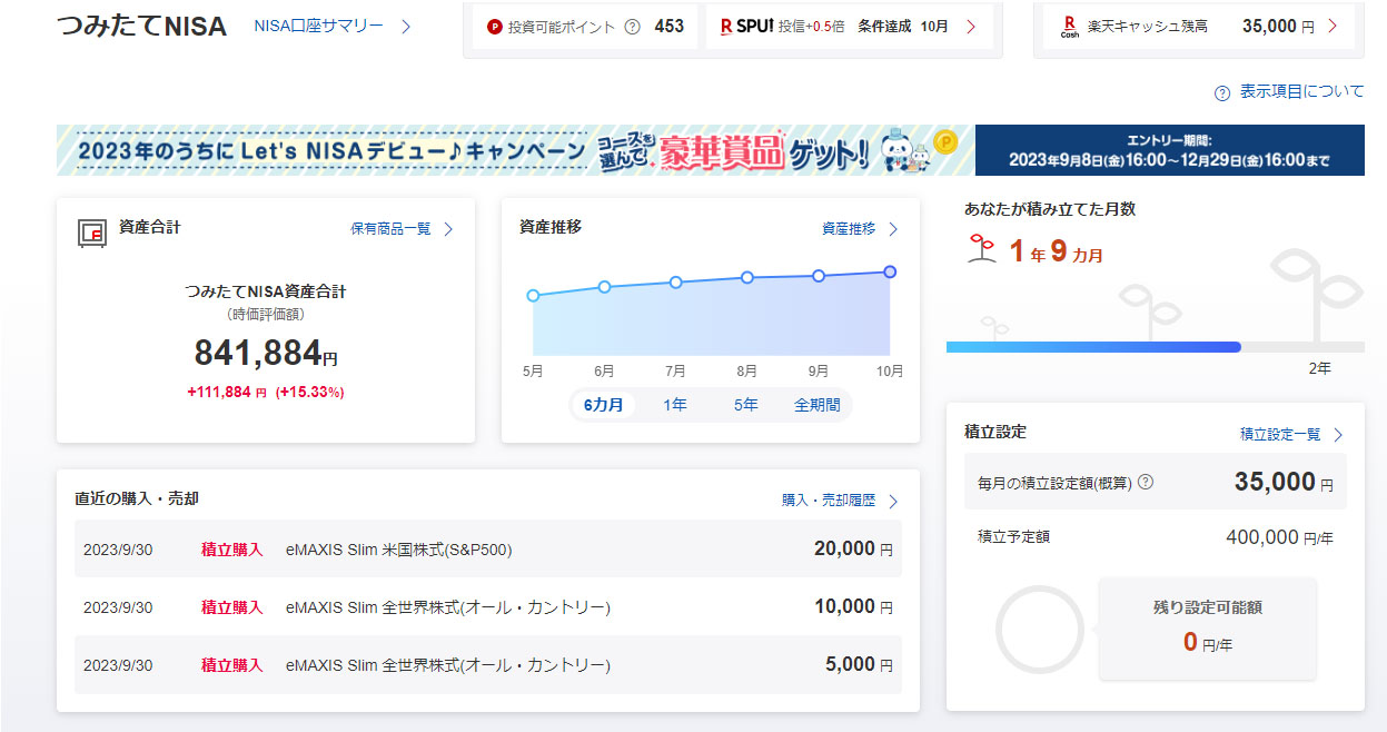 つみたてNISAもこのところは伸びが鈍化傾向ですが足元では米国のグロースに追い風が吹く気配なので年末までは上がりそうな感じで楽しみ!この楽天証券の「つみたてNISA」も年内でお終いです。