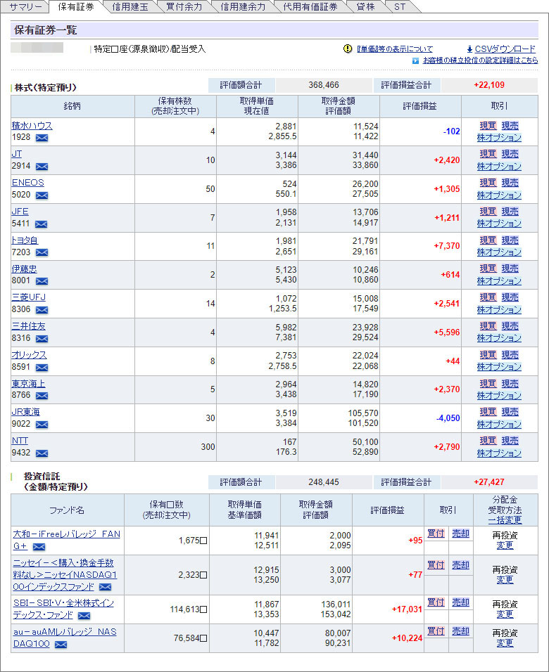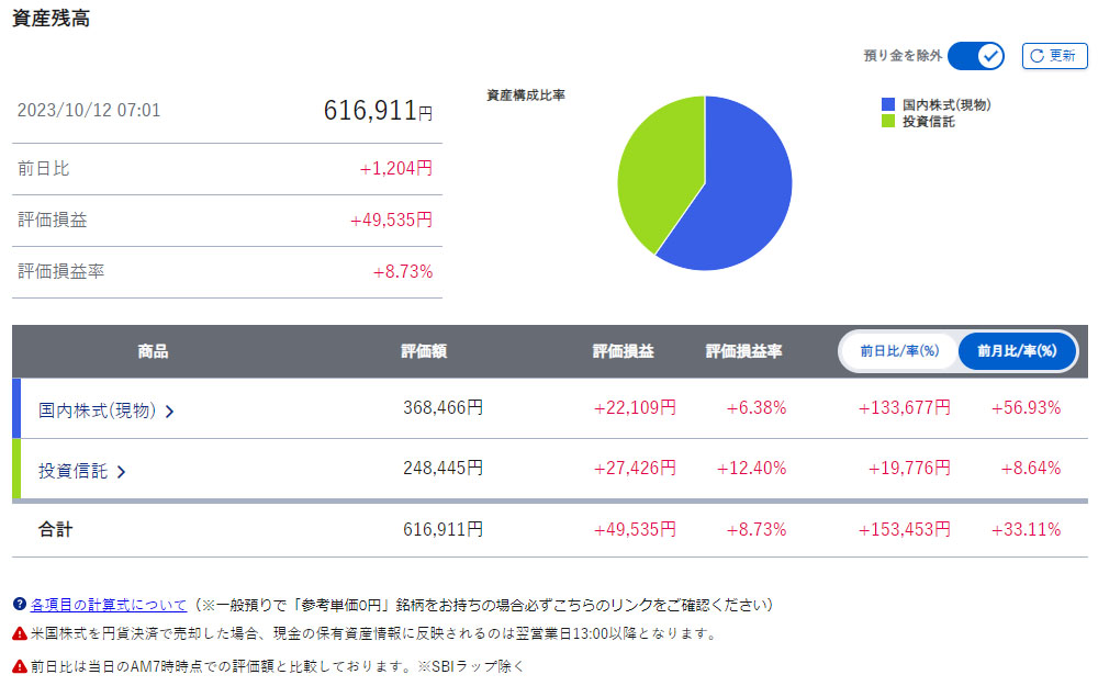 SBI証券で保有の銘柄も大方プラスなので含み益は8.73%です。