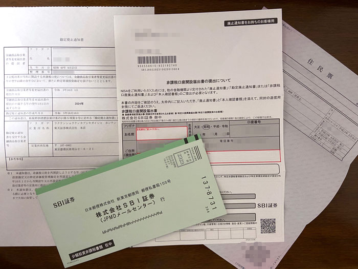 NISA口座を楽天からSBIに移管します(やりかた④) ③からのつづき 申請をネットで完結してから15日。。。 楽天から「勘定廃止通知書」が送られてきました。 待ってたよ!楽天さん 中身は簡素に「勘定廃止通知書」と案内の2枚のみ 待っていた「勘定廃止通知書」です。 拡大 必要書類が揃いました。 明日、ポスト投函します! (つづく)