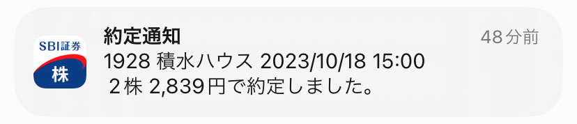 積水ハウスも現在評価損なのでこちらも2株追加しました。