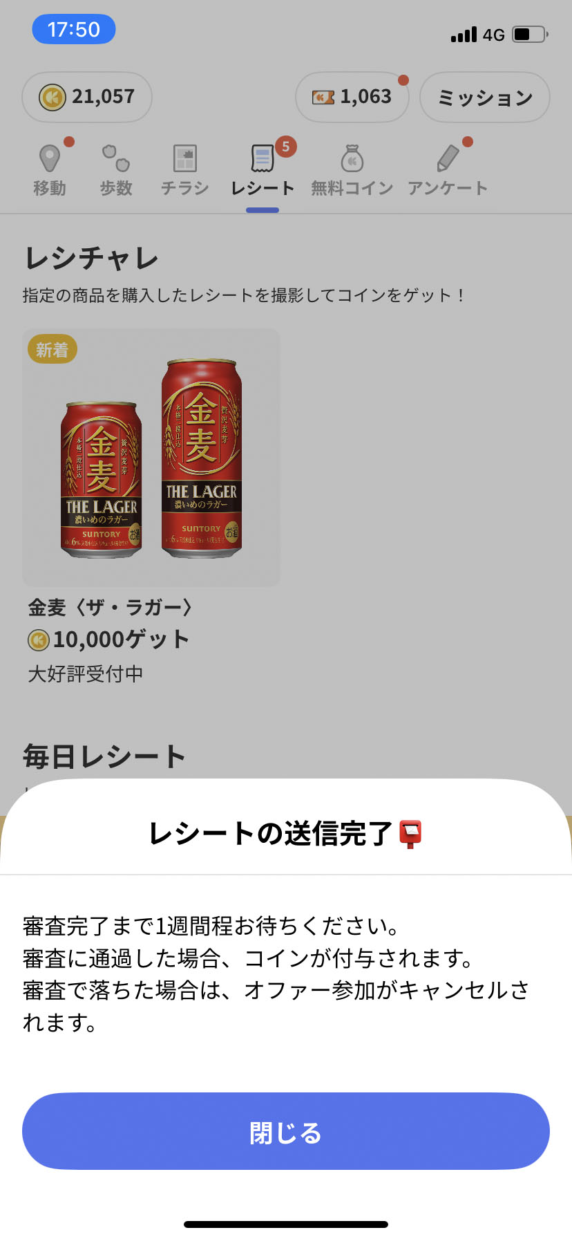 これも1回まで。。。金麦ラガーは結構好きなので何回でも応募できたらいいのにな~~