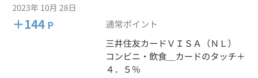 今回は「三井住友カードVISA(NL)コンビニ・飲食_カードタッチ+4.5%」というもの。