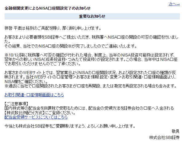 今日、SBI証券のサイトにログインしたら昨日日付のお知らせがあり