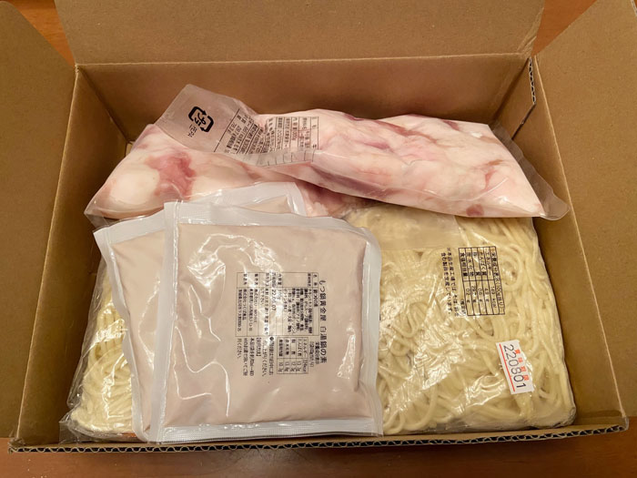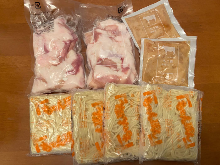 モツ×2袋、スープの素×2袋、ちゃんぽん麺×4玉