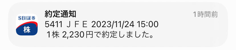 トヨタ自動車に続いてJFEホールディングスも追加で1株購入しました。