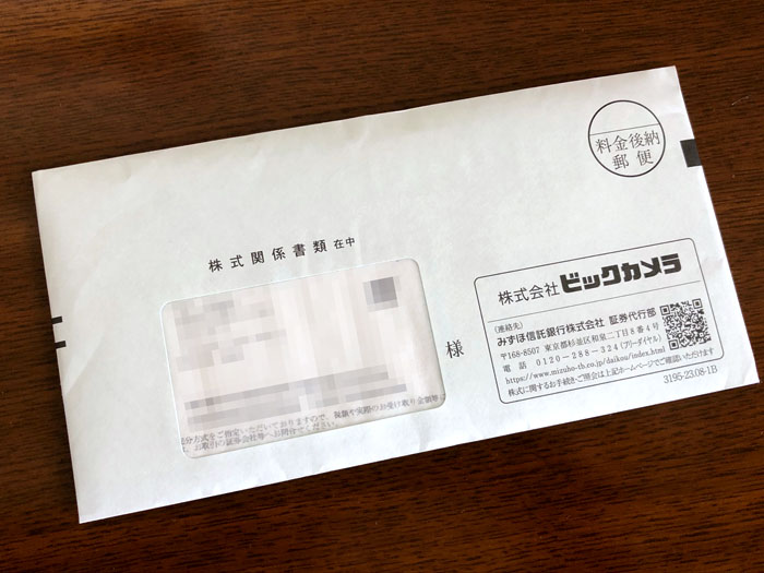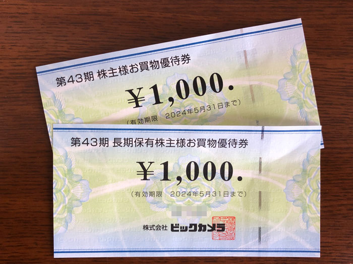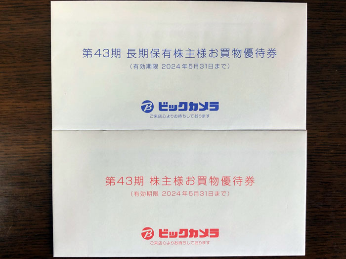 ビックカメラから「株主優待券」が送られてきました。