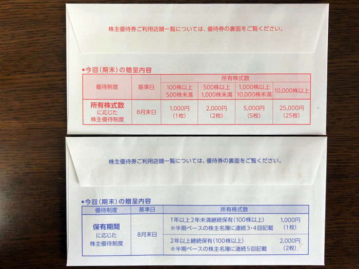 今回から「長期保有株主様お買物優待券」がプラスされます。