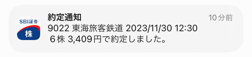 そして12:30には約定の通知が来ました。これで39株保有です。