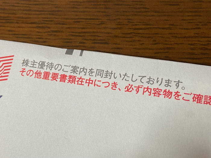 封筒には「株主優待のご案内を同封いたしております。」とありますが私は単元未満株主ですので。。。