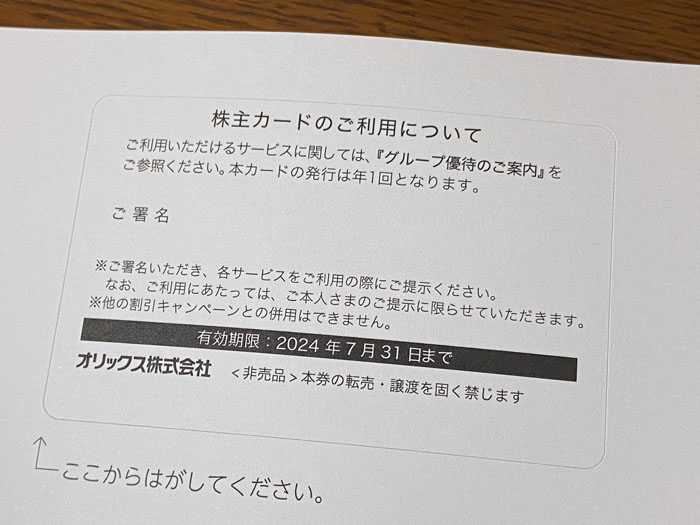 立派な優待でした。オリックスといえば「カタログギフト」が超有名ですが単元未満でも優待割引はして貰えるようです。これって全然知りませんでした。