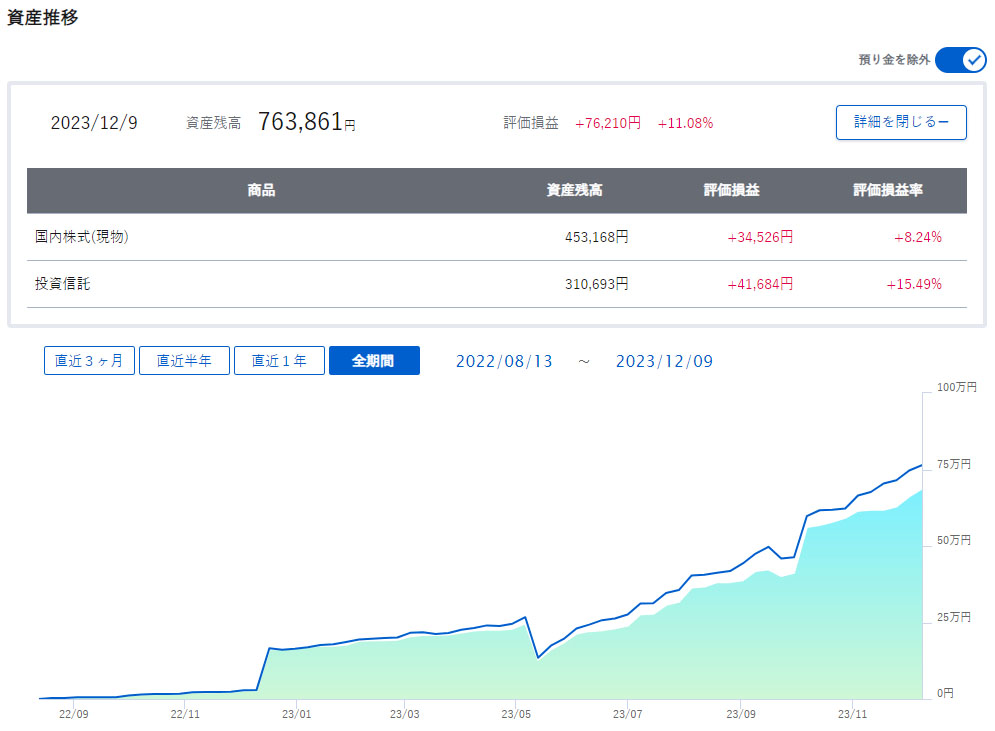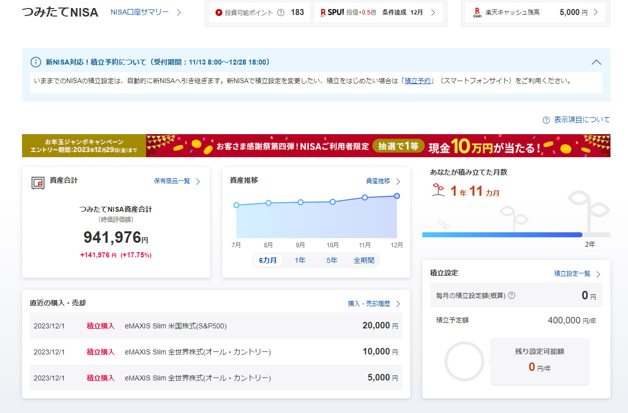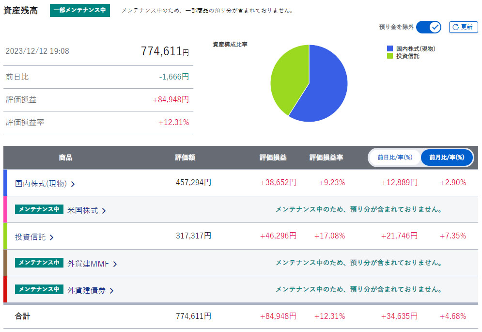 メンテナンス中の項目はいずれも0円なので私には影響は出ていません。こちらも来年からは新NISAを始めるので資産は増える方向です。メイン口座になるので