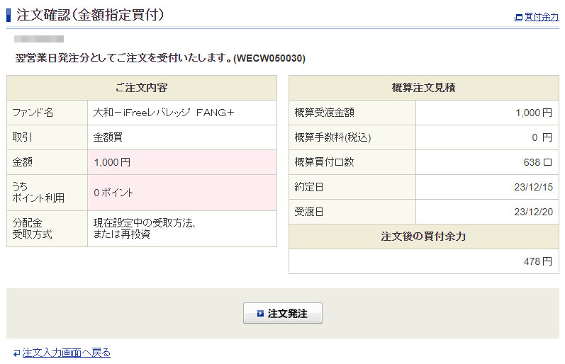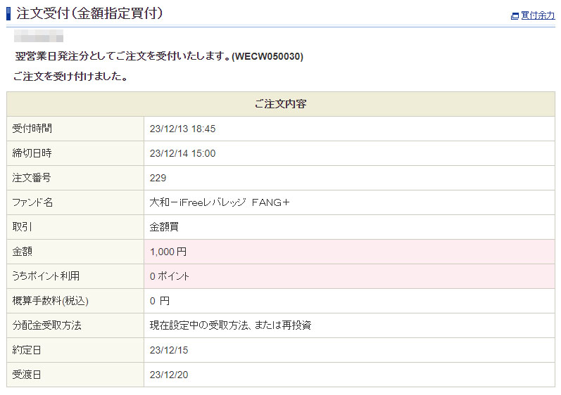 こちらはPowlでの資金なので「iFreeレバレッジFANG+」へ入れます。