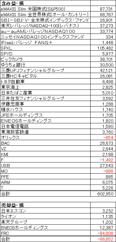 思い返せば3月の金融不安の時に買った「三菱UFJフィナンシャル」と「三菱HCキャピタル」「BAC」「USB」がやはり利幅が大きく。「FRC」はその失敗例となりました。