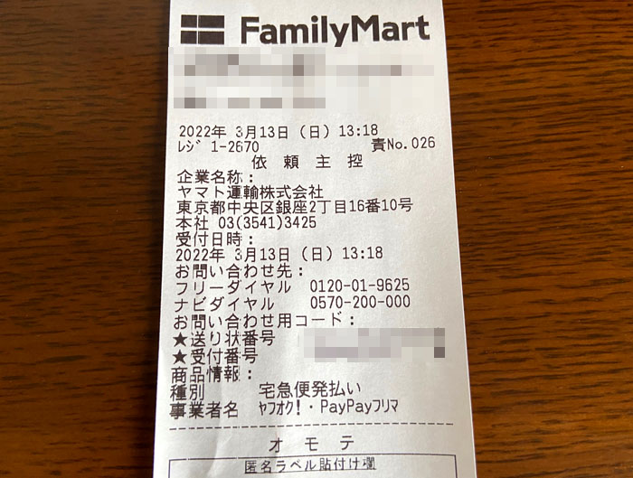 次に実際にコンビニに持ち込んでスマホで先ほど発行されたQRコードを店内の緑の機会に通しレシートを発行。レジに持って行くと送り状を出してくれます。