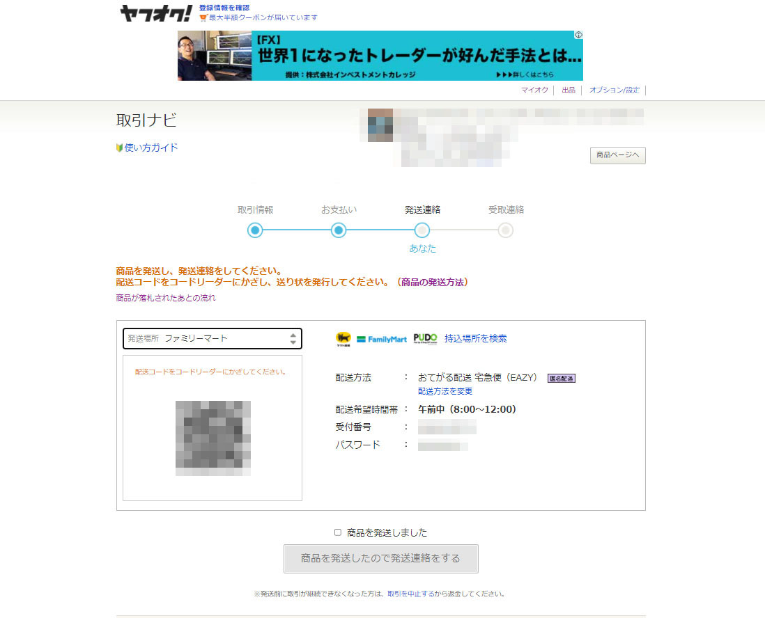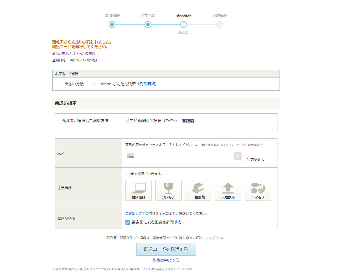 そして落札され入金確認があると