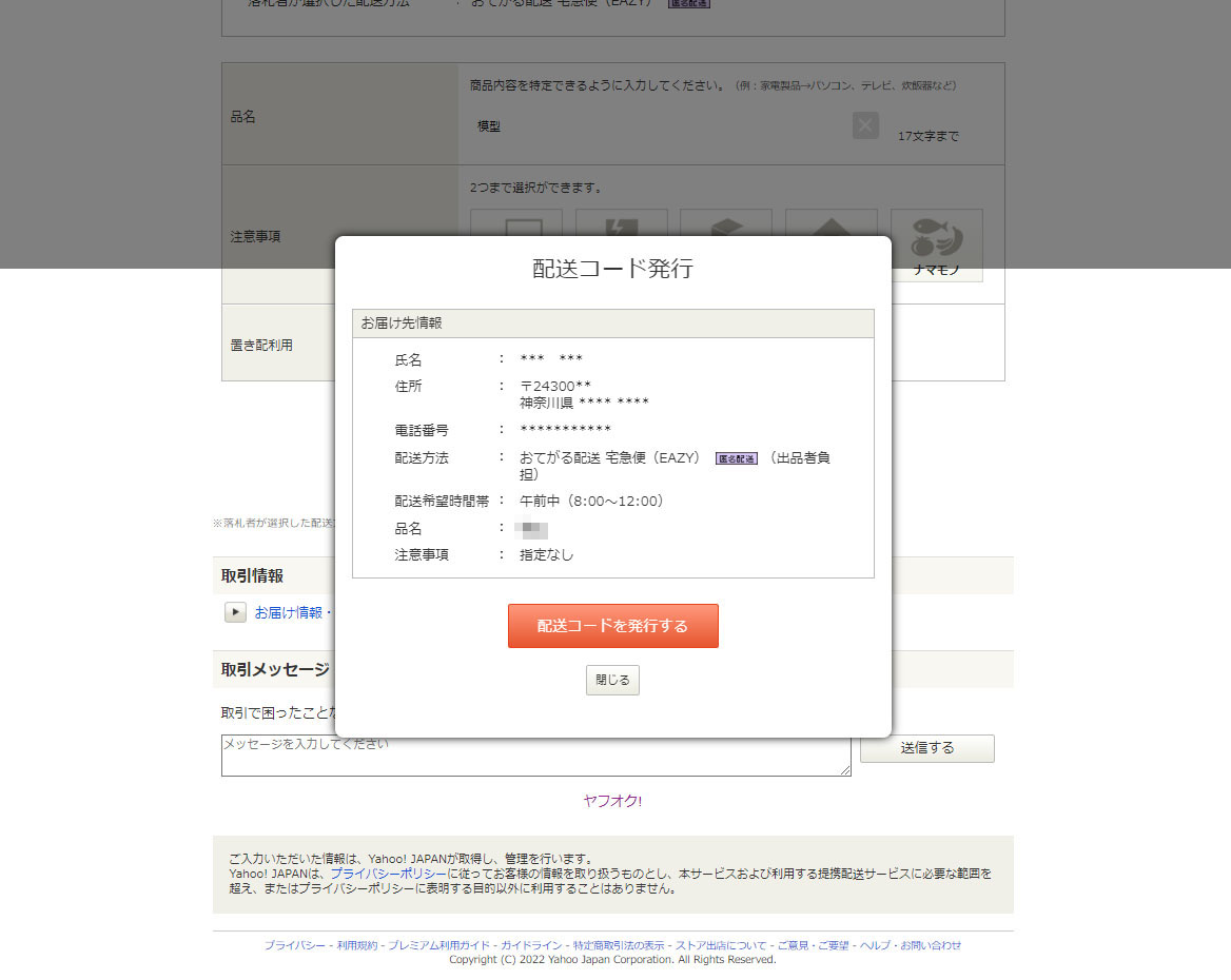 取引ナビで手続きします。送り状の品名は出品時より分かりやすいものに変えました。