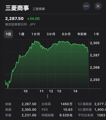 三菱商事も大きく下げたところから始まり午前は急上昇。