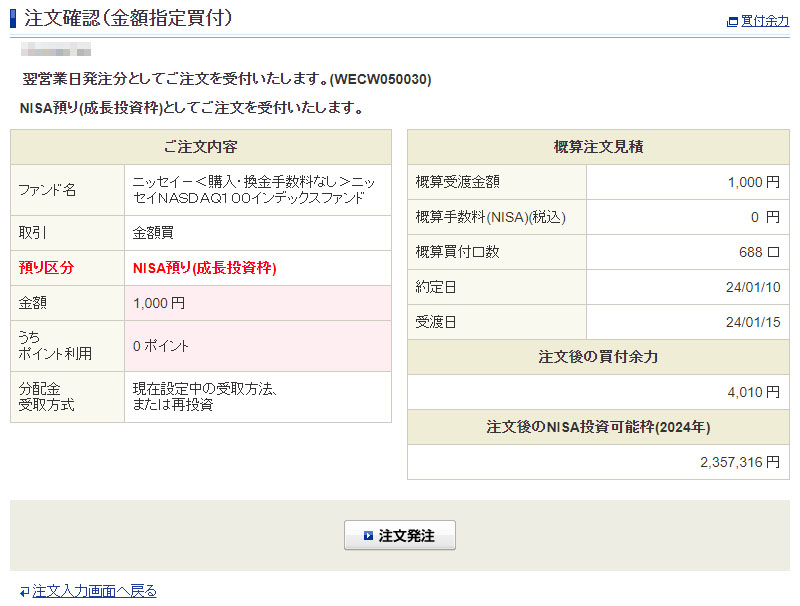買い方は同じですが「預り区分」を『NISA預り(成長投資枠)』にするだけ