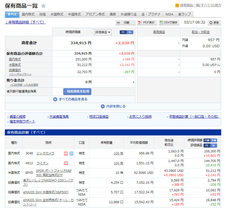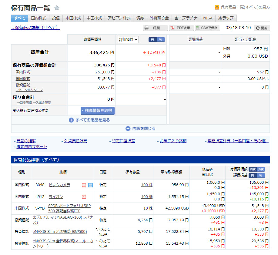 2022.3.18 何とレバナスも評価益に!投信の3銘柄全て評価損解消です。